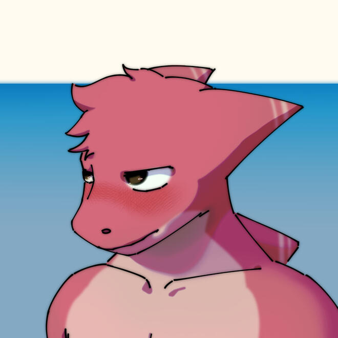 Diego is a 27 year old cis male dragon that is 206cm/6'9" tall.He is homosexual and aromantic.Since he is aromantic, he is currently not interested in intimate relationships and doesn't plan to have one in the future.Given his bulky muscular build, it is not surprising he works as a bouncer and does deadlifting as a hobby (and is very good at both!).However what is surprising is that Diego is actually quite a gentle and kind man, but puts on a harsh and tough facade when facing difficult people at work.He has barbell nipple piercings but it might be missing in some art. I allow artists to exclude them if they do not feel comfortable including it in their art.