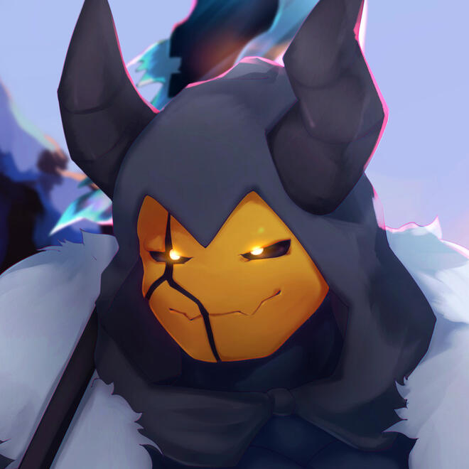 Damien is an immortal demon with an unknown age.His height is 267cm/8'9" and he is pansexual.He is actually wearing a cracked orange mask over his face so he is able to convey facial expressions.